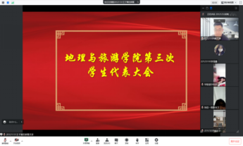 (文/任立尧)2022年10月10日下午三点,地理与旅游学院召开了第三次学生代表大会。学院党总支书记方永秋、辅导员梁梦阳、王欣媛、学工办主任任立尧、学生代表林琨峰、武晓等参加大会。本次大会的主题是引导青年学生坚定地跟党走、奋进新时代为实现中华民族伟大复兴的中国梦贡献特色鲜明的应用型青春力量。