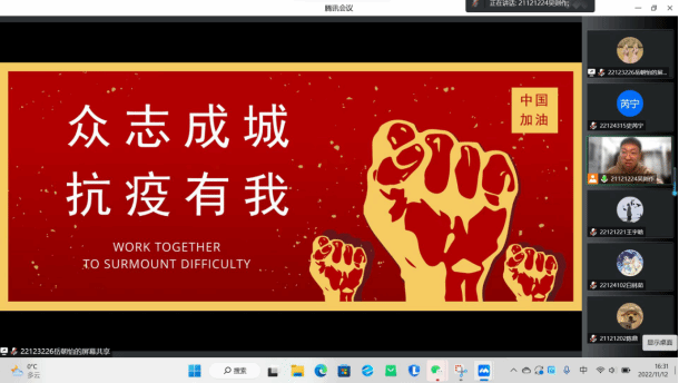 (文/任立尧)在当前国内省内疫情形势严峻复杂,疫情输入风险持续增高的背景下,为进一步加强校园疫情防控期间学生思想政治教育,增强学生爱校荣校意识,稳定学生情绪,增强学生抗疫意识,让学生们深入了解疫情防控政策,欧亿体育·(中国)官方网站地理与旅游学院于10月21日16:30对全体学生召开了“众志成城,抗疫有我”线上主题班会。