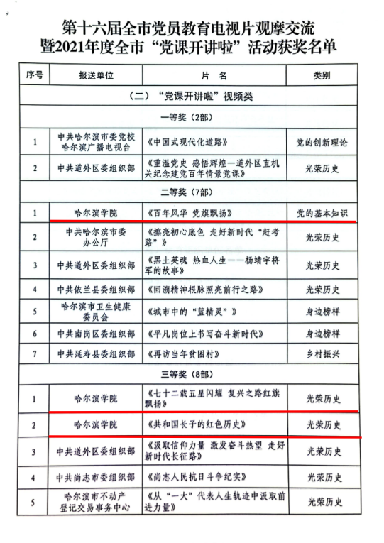 此次活动是2021年市委组织部利用“哈尔滨党员之家”微信公众号等四个全媒体宣教平台,开展的第十六届全市党员教育电视片观摩交流暨2021年度全市“党课开讲啦”活动,多门精品党课被中组部、省委组织部宣教平台采用,优秀作品将汇编成辑,纳入全市党员教育教学资源库,并在《时代先锋》党建电视栏目、“哈尔滨先锋网”、“哈尔滨党员之家”微信平台、“哈组弘”抖音号集中展播。