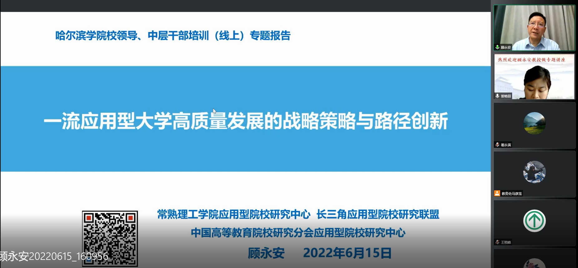 (文/王鑫)6月15日下午,受学校邀请,常熟理工学院应用型院校研究中心主任顾永安教授在线上为我校做了题为《一流应用型大学高质量发展的战略创新与实施路径》报告。全体校领导、中层干部、科级干部、专业系主任、骨干教师180余人线上聆听了报告。报告由教务处处长姜艳丽主持。