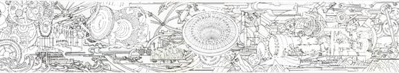 经过多次论证,确定该壁画以叙事的形式还原三大动力的历史,用怀旧的老工业基地历史图片,具有代表性的产品和生产车间原貌,再现当年为共和国建设热火朝天的工作场景。情怀与荣耀的交相辉映,历史与现代的火花碰撞,使中国工人阶级的主人翁精神在钢铁和冰冷的机器中绽放,更激励着当代更多的大国工匠,弘扬东北老工业基地的精神,传承历史,走向未来。