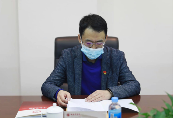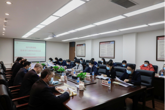 会议采取线上线下相结合方式进行。学校党政领导班子成员、党史学习教育领导小组成员在党政办公楼306会议室参会,全校副处级以上干部、各党支部书记在线上参会。