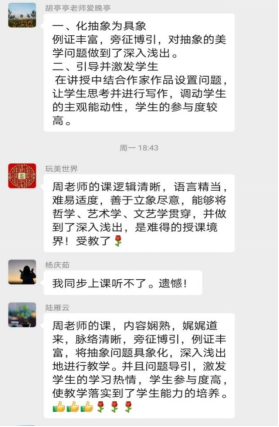 汉语言文学专业在发展的过程中,一直将课堂教学放在至关重要的位置,也因此积累了丰富的经验,创下了优良的传统,形成了突出的专业优势。每位老师都能够将个人魅力与专业风格融为一体,成为讲台上那个眼里有光、心中有爱、口中有术的人。本次集中听课、评课活动为教研活动的深入开展搭建了一个很好的平台,它使教师受教、学生受益,很有意义!