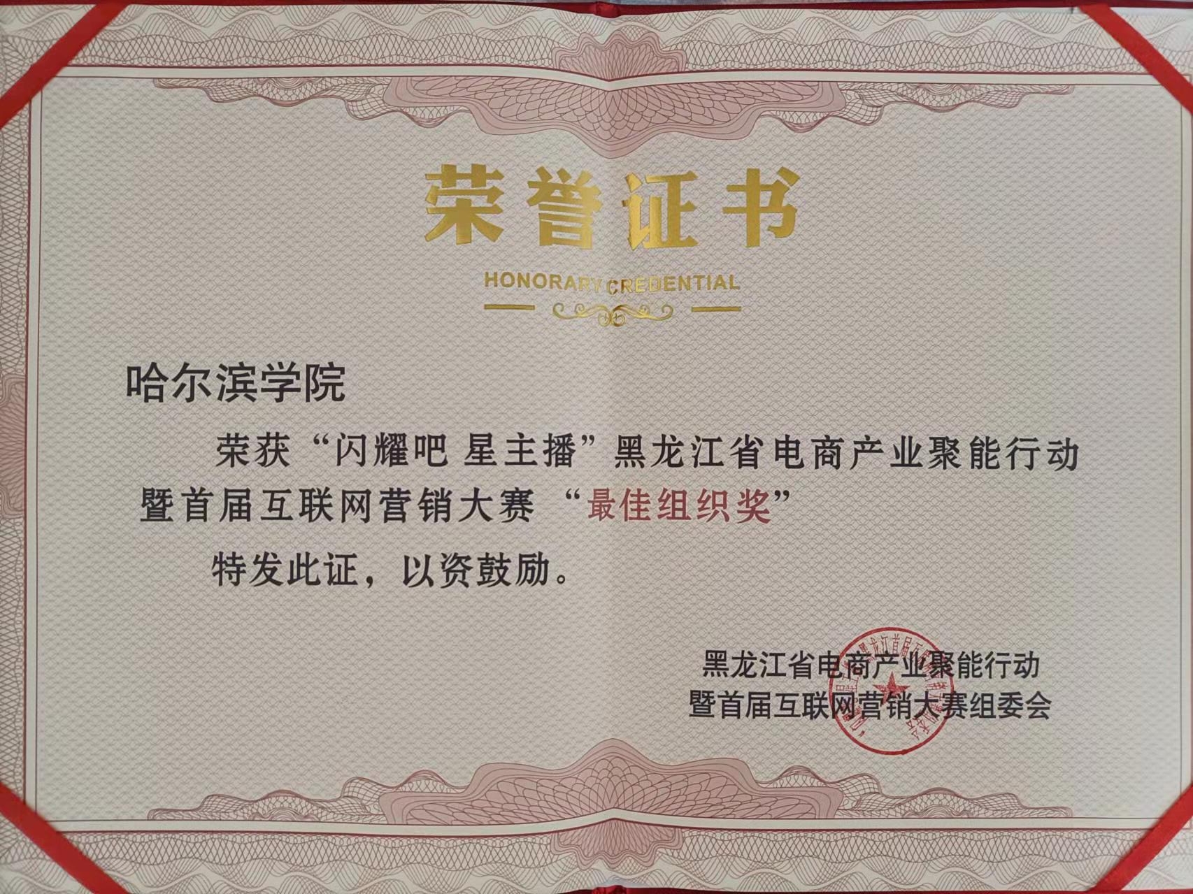 在这一系列活动中,我校荣获了“闪耀吧,星主播!黑龙江省电商产业聚能行动暨首届互联网营销大赛”的“最佳组织奖”。自我校融媒研修院成立以来,一直积极组织师生参与各项活动,先后组织我校10名教师参加龙广电快手融媒研修院认证讲师培训,其中3名教师已经获得认证;组织近200名同学参加8直播电商培训;组织近600人参与互联网营销大赛,其中2名同学获得全省前100名的好成绩。